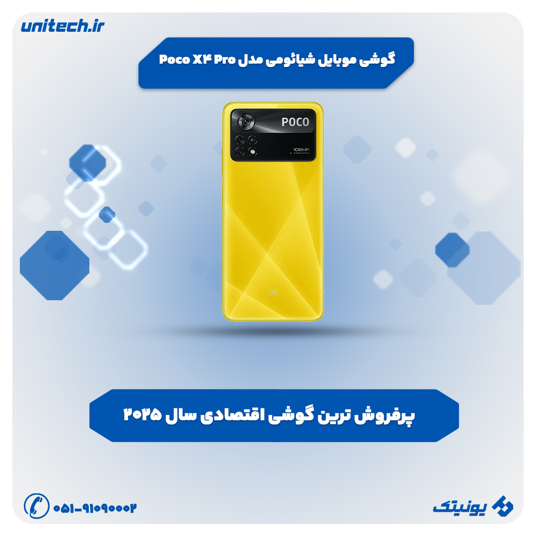 گوشی شیائومی پوکو X4 پرو 5G با حافظه 256 گیگابایت و رم 8 گیگابایت، مجهز به پردازنده Snapdragon 695 5G، دوربین اصلی 108 مگاپیکسلی، نمایشگر 6.67 اینچی Super AMOLED با نرخ نوسازی 120 هرتز و باتری 5000 میلیآمپر ساعت با شارژ سریع 67 وات. مشخصات کامل و بهترین قیمت.