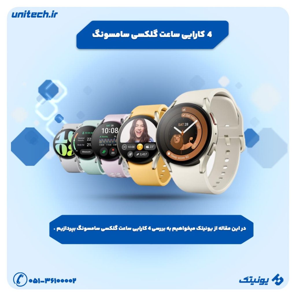 در این مقاله از یونیتک میخواهیم به بررسی 4 کارایی ساعت گلکسی سامسونگ بپردازیم. یک تیم عالی در تجارت به همان شیوه ای عمل می کند که در زمین ورزشی هر بازیکن، نقش خود را انجام می دهد و همه از یک هدف حمایت می کنند. بدون ارتباط، تیم شما ناهماهنگ و نادقیق است و اغلب در لحظات حساس توپ را رها می کند. در اقتصاد موبایل امروزی، سرعت بازی با انتظارات بیشتر برای سرعت اجرا، اشتراک گذاری اطلاعات و شخصی سازی افزایش یافته است. به همین دلیل است که پتانسیل ساعت های هوشمند بسیار هیجان انگیز است. دستگاه های هوشمند مانند گلکسی واچ جدید، در لبه پیشرو ارتباطات تیمی، همکاری، ایمنی و تحول دیجیتال هستند. ساعتهای هوشمند از جهات مختلفی از سایر دستگاههای تلفن همراه منحصر به فرد هستند: هندزفری (بدون نیاز به دست) هستند و فوراً در دسترس هستند، دارای حسگرهای داخلی هستند که میتوانند حرکات و حیاتی کاربر را در همه زمانها کنترل کنند و میتوانند هشدارها یا بهروزرسانیهای محتاطانه را با استفاده از آنها ارائه دهند. برای بازخورد لمسی در محیط های کاری که ایمنی یا سرعت ارتباط مهم است، ساعت های هوشمند می توانند ارزش فوق العاده ای ارائه دهند.