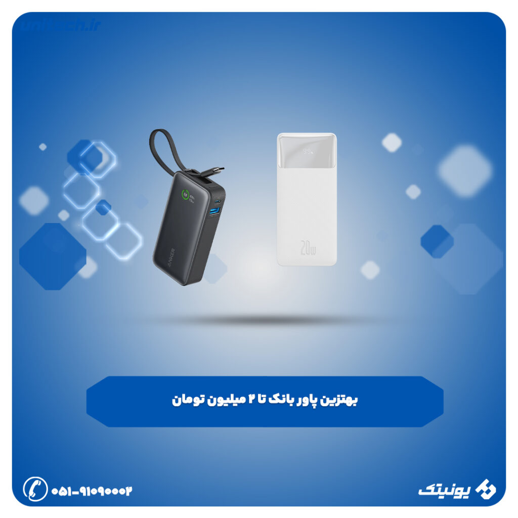 در زندگی ماشینی امروز گوشی های موبایل، تبلت ها و حتی ساعت های هوشمند بخش جدا نشدنی زندگی ما به شمار می روند. اما شارژر این دستگاه ها همیشه همراه ما نیست و گاهی وسط روز خاموش می شوند! اینجا پاور بانک به کمک می آید تا در هر مکان و زمان، بتوانیم دستگاه هایمان را بدون نیاز به پریز برق شارژ کنیم. با وجود تنوع زیاد پاور بانک ها در بازار، انتخاب بهترین پاور بانک تا 2 میلیون تومان می تواند کمی گیج کننده باشد. فروشگاه یونیتک به شما کمک می کند تا با دادن اطلاعات کامل و مشاوره رایگان، بهترین پاور بانک را متناسب با نیاز و بودجه تان انتخاب کنید. با ما تا انتهای مقاله همراه باشید.