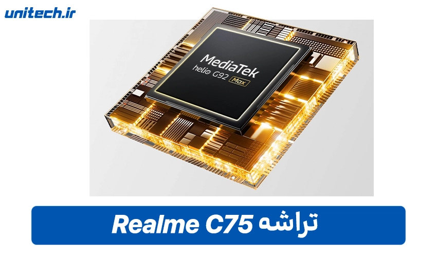 گوشی ریلمی C75 مجهز به تراشه Mediatek Helio G92 Max (۱۲ نانومتری) است. این پردازنده هشت هستهای با هسته های اصلی Cortex A75 و پردازنده گرافیکی Mali-G52 MC2، عملکردی متوسط و رو به بالا در کاربریهای روزمره و مالتی مدیا ارائه می دهد. فناوری ساخت ۱۲ نانومتری در مقایسه با تراشه های جدیدتر، کمی قدیمیتر محسوب میشود. در بخش حافظه، ۸ گیگابایت رم برای چندوظیفگی روان کافی است و ۲۵۶ گیگابایت حافظه داخلی همراه با پشتیبانی از کارت حافظه microSD، فضای ذخیره سازی حجیمی را فراهم می کند.