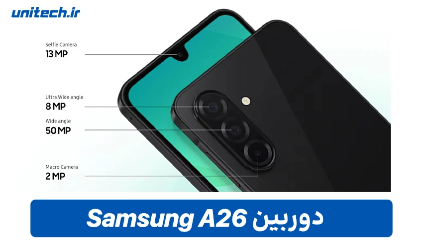 یکی دیگر از امکانات منحصر به فرد گوشی سامسونگ A26، استفاده از دوربین چند گانه با سنسور اصلی 50 مگاپیسکلی برای ثبت عکسهای باکیفیت و ویدیوهای بدون لرزش ، سنسور اولتراوید 8 مگاپیکسلی ثبت تصاویر عریض، سنسور سلفی ۱۳ مگاپیکسلی برای برقراری تماس های ویدیویی و ثبت سلفی های باکیفیت و سنسور ماکرو 2 مگاپیکسلی برای عکاسی سوژه ها در فاصله نزدیک می باشد.