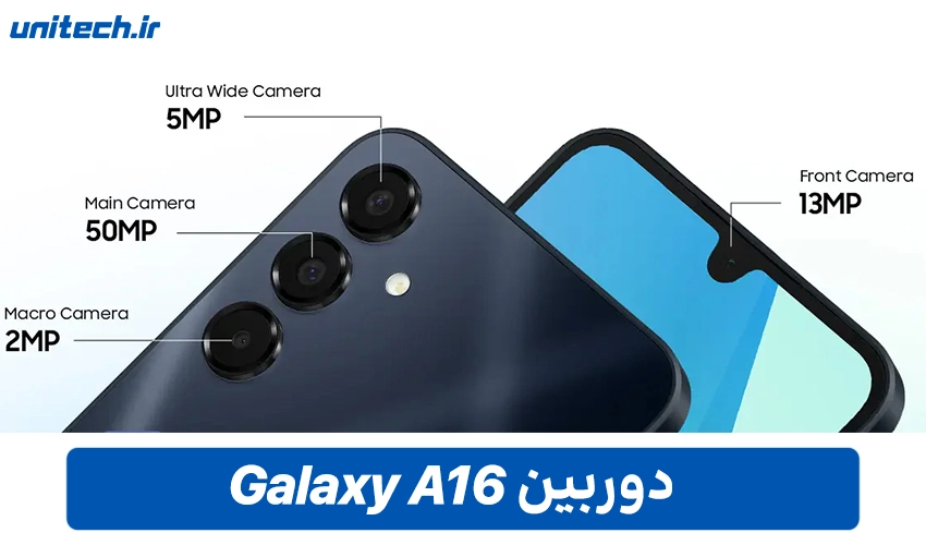 یک گوشی اقتصادی با سیستم دوربین 3گانه، متشکل از لنز اصلی 50 مگاپیکسلی+ لنز فوق عریض 5 مگاپیکسلی+ لنز ماکرو 2 مگاپیکسلی. دوربین سلفی گوشی سامسونگ گلکسی A16 با سنسور 13 مگاپیکسلی، مناسب برقراری تماس های تصویری و گرفتن عکس های سلفی با کیفیت است. دقت داشته باشید دوربین این گوشی در شرایط نور کم، کیفیت مطلوبی ندارد.