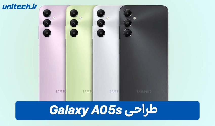 این گوشی اقتصادی با وزن ۱۹۴ گرم و طراحی ارگونومیک، بسیار خوش دست بوده و از نظر طراحی زیبا و با دوام است. سامسونگ گلکسی A05s از فریم مقاوم، قاب پشتی پلاستیکی باکیفیت و پنل جلویی شیشه ای ساخته شده و در 4 رنگ مشکی، سفید، سبز و صورتی در بازار موجود است.