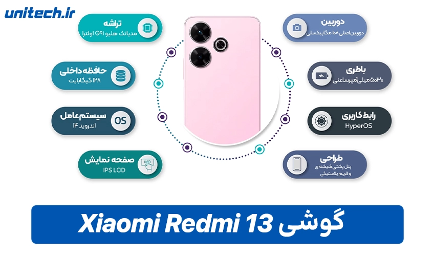 همانطور که گفته شد Redmi 13، با امکاناتی چون نمایشگر با کیفیت و باتری قوی جزو بهترین گوشی های اقتصادی برند شیائومی محسوب شده که در حال حاضر در بازار ایران زیر 18 میلیون تومان قیمت دارد. جهت خرید گوشی ردمی 13 با ظرفیت 256 و رم 8 کلیک نمایید.