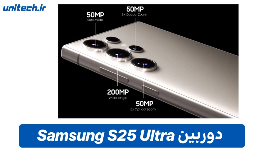 دوربین چهارگانه Galaxy S25 Ultra از برند سامسونگ شامل لنزهای قدرتمند از جمله دوربین اصلی 200 مگاپیکسل (Wide) با دیافراگم f/1.7 و OIS، دوربین اولتراواید 50 مگاپیکسل با زاویه دید 120 درجه، دوربین تله فوتو 10 مگاپیکسل با زوم اپتیکال 3 برابری و دوربین سلفی 12 مگاپیکسل با فوکوس خودکار دوال پیکسل برای ثبت تصاویر حرفهای است.