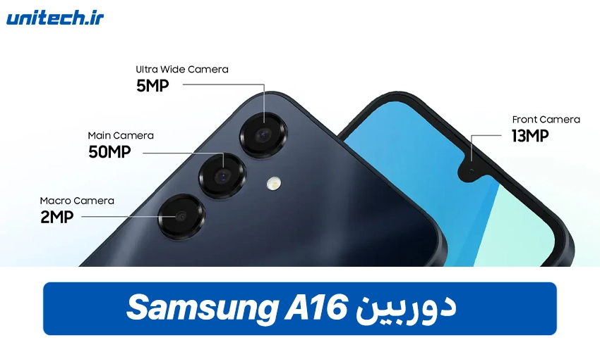 دوربین سه گانه سامسونگ گلکسی A16 با قابلیت های منحصر به فرد چون لنز اصلی 50 مگاپیکسلی، لنز 5 مگاپیکسلی اولترا واید و لنز 2 مگاپیکسلی ماکرو، امکان استفاده از گوشی حتی زیر نور مستقیم آفتاب را فراهم می کند. دوربین سلفی این گوشی نیز 13 مگاپیکسلی بوده که برای برقراری تماس های تصویری و ثبت سلفی های با کیفیت مناسب است.