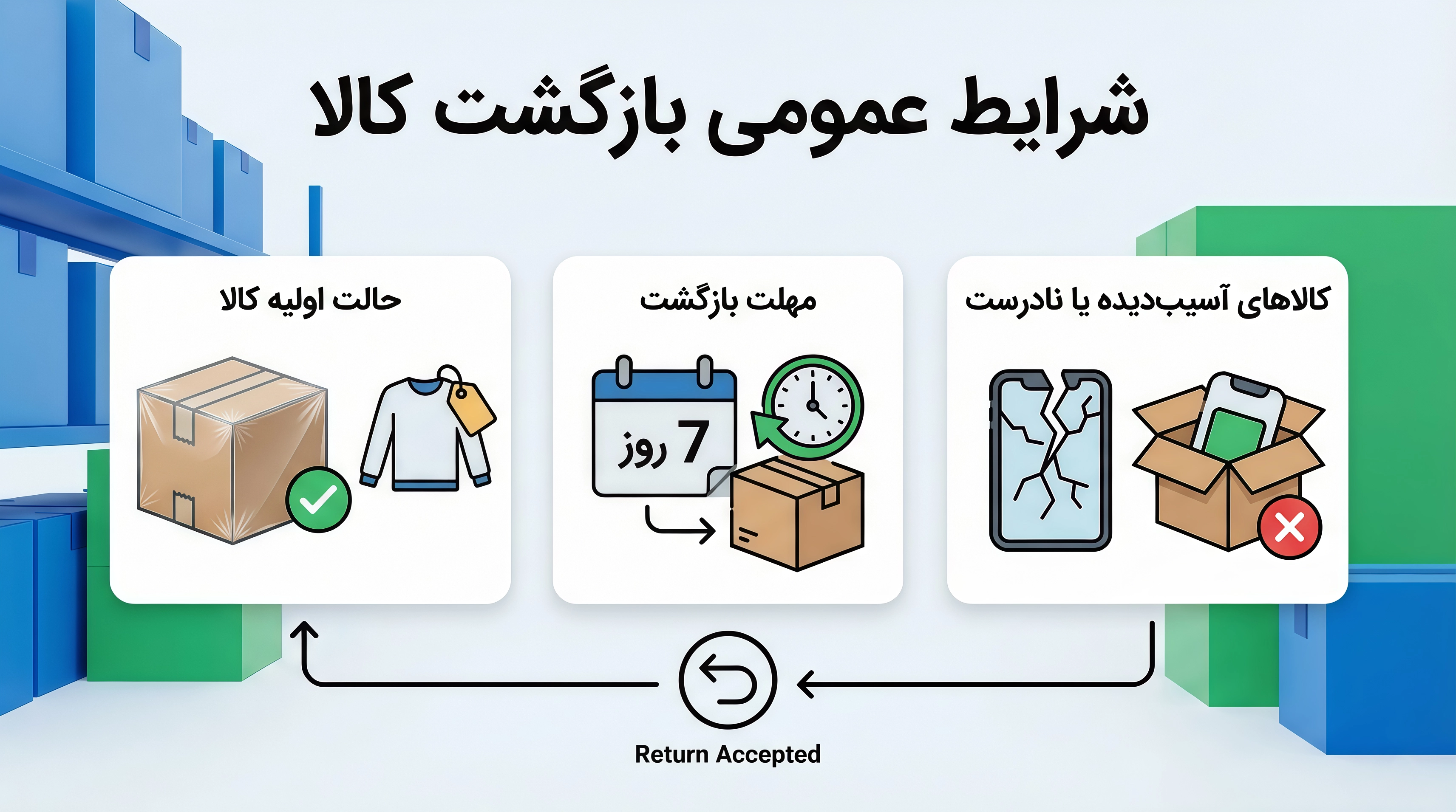 کالاهای آسیب‌دیده، معیوب یا نادرست ارسال‌شده مشمول شرایط بازگشت کالا هستند.