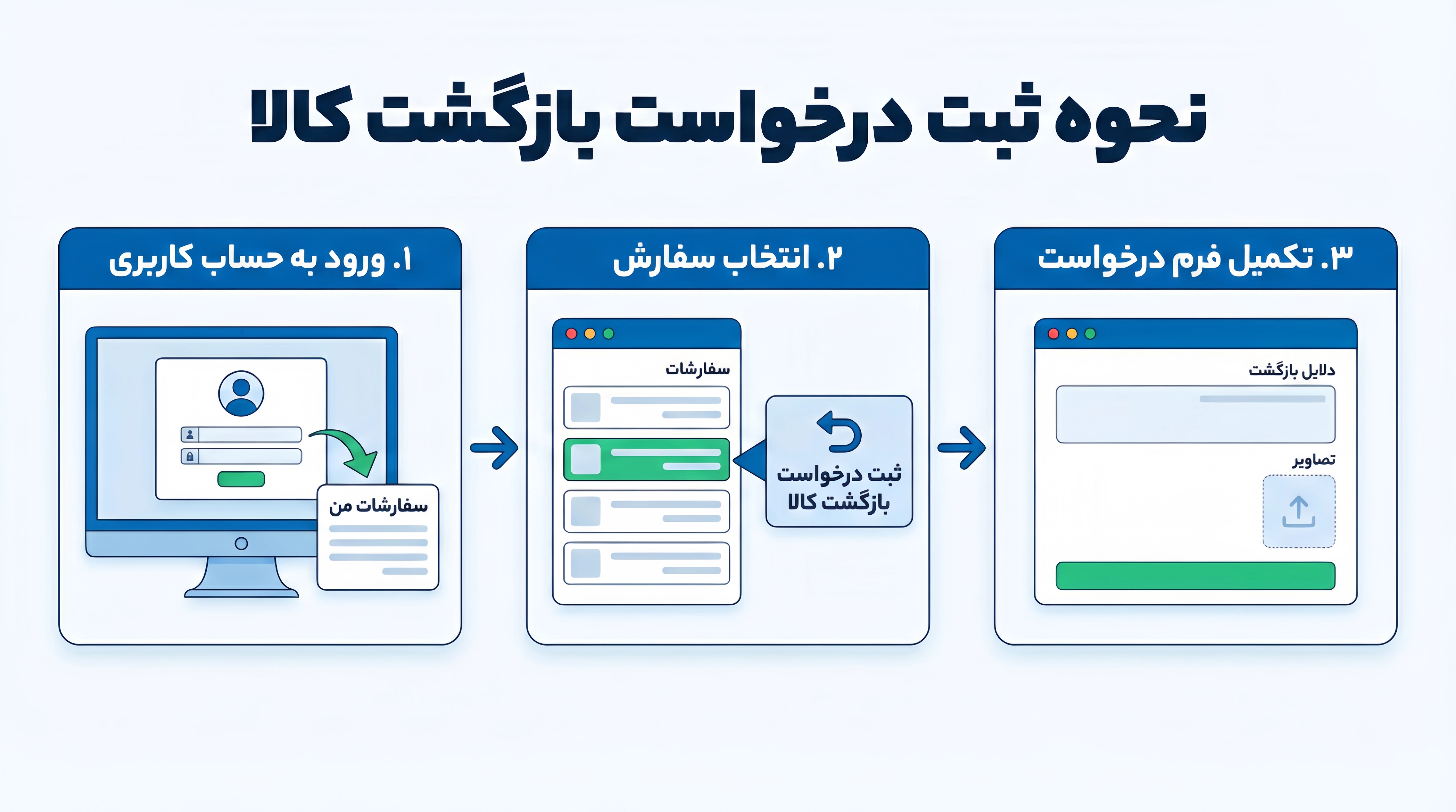 برای ثبت درخواست بازگشت کالا، مراحل زیر را دنبال کنید: